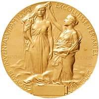 Na obrázku je zadní strana Nobelovy ceny za literaturu s latinským textem na okraji: Inventas vitam juvat excoluisse per artes = vynálezy zlepšují život, který je zkrášlován uměním (latinský text). Na zadní straně medaile je reliéf mladého muže, který drží ženu držící lyru za vlasy. Zda to má znamenat, že mladík chytá nějakou Múzu (literární, i když Múzu má jen poezie, viz Wikipedie ZDE) = příležitost za pačesy, nevím.